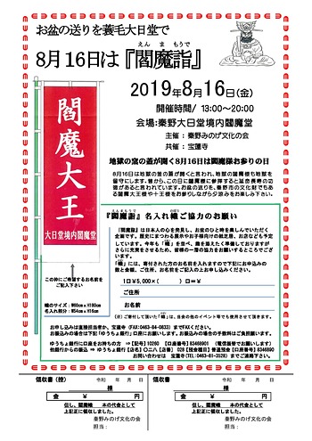 2019 今年もお盆の送りは蓑毛大日堂で ~ 8月16日に大日堂で『閻魔詣』を開催