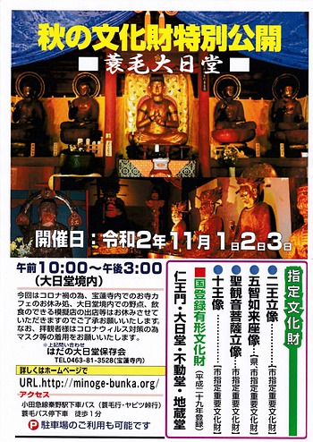 (重要文化財指定にはなっていませんが、不動明王像【未調査古仏】も公開されます。但し、不動堂内へは入れません。)