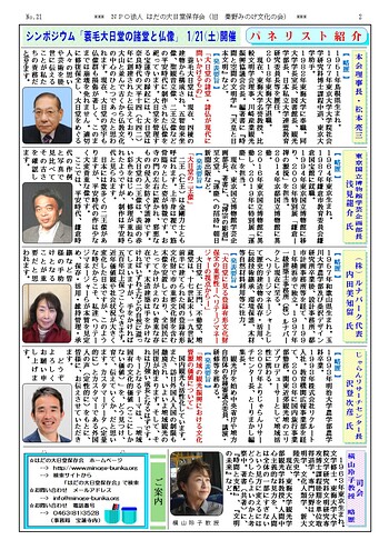 1面 : 1/21に開催予定のシンポジウムのご案内など