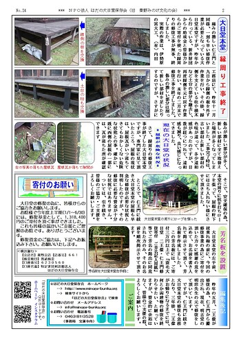 2面 : 大日堂本堂の縁周り工事の終了報告など