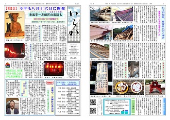 8/16開催の閻魔詣の予告記事や、修復中の仁王門屋根の様子、大日堂本堂の建具・壁修復の終了報告などが記載されています。